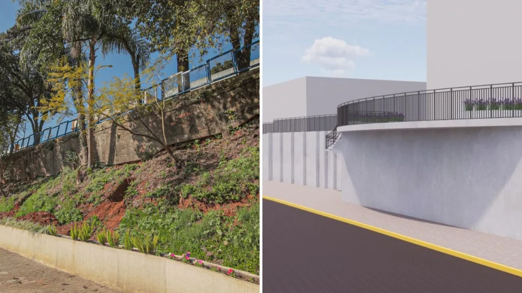 De acordo com o projeto técnico, será construído um muro de contenção em concreto armado com 26,50 metros de extensão e uma área total de intervenção de 161,2 metros quadrados.