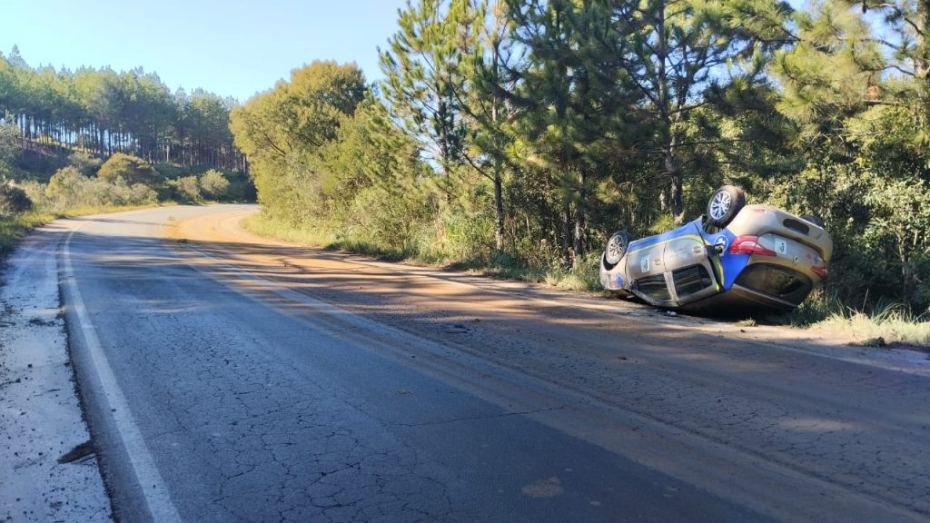 Três pessoas ficaram levemente feridas em um acidente de trânsito na manhã desta terça-feira (27), na rodovia SC-135, no município de Calmon. Um veículo Renault Sandero, de propriedade da Secretaria de Saúde do Município de Calmon, saiu da pista e capotou.