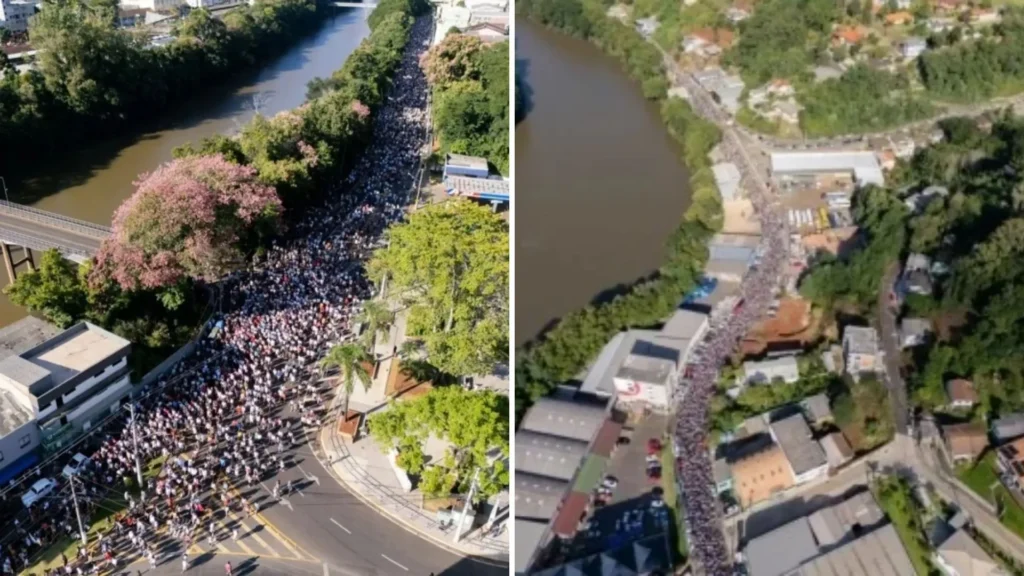 O evento reuniu romeiros não apenas de várias regiões de Santa Catarina, mas também de outros estados, reforçando a importância espiritual da caminhada para a comunidade católica.