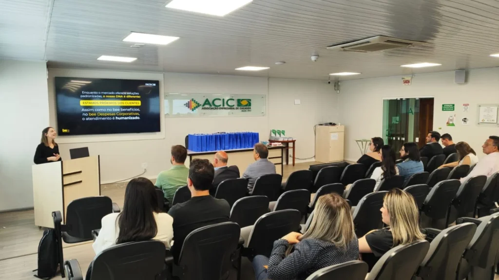 Durante o encontro, Aline Teixeira, consultora comercial da Facisc, apresentou o Bee, uma solução criada pela Facisc em parceria com a Rede Mastercard® para facilitar a oferta de benefícios aos colaboradores das empresas de forma ágil, flexível e inovadora.