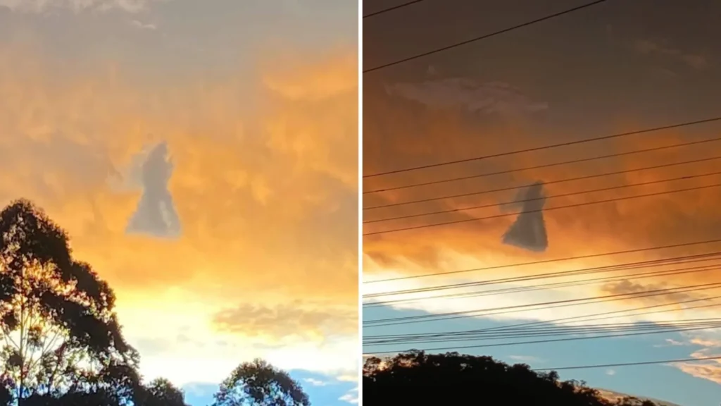 “Parece ser uma nuvem de um anjo ali”, comentou uma moradora ao flagrar a cena, descrevendo a imagem com entusiasmo.