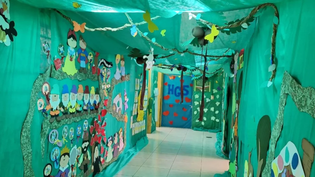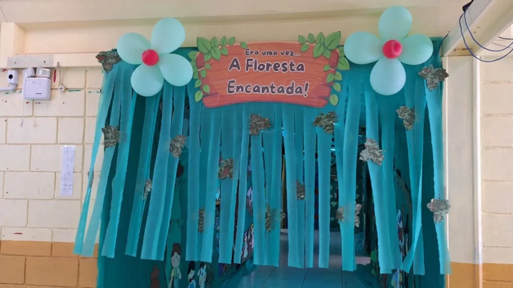 A escola foi totalmente decorada com elementos inspirados em clássicos da literatura infantil, criando um ambiente que remete a um “mundo mágico”. Entre os espaços montados estão a caverna da Cuca, o cantinho da Narizinho, áreas de leitura e referências a personagens do Sítio do Picapau Amarelo, além de diversas atividades interativas.
