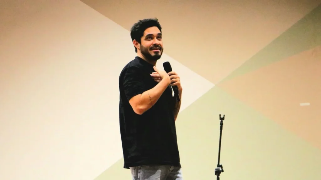 Com seu humor leve e inteligente, Diogo fez o público rir ao retratar o cotidiano das salas de aula e as situações vividas pelos professores, abordando com sensibilidade os desafios e as alegrias da educação.