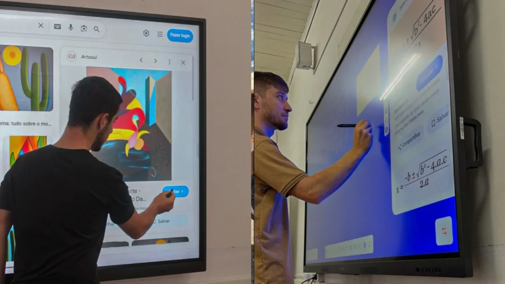 Tudo isso aumenta a interatividade e colaboração entre alunos e professores, tornando as aulas mais dinâmicas e visuais.
