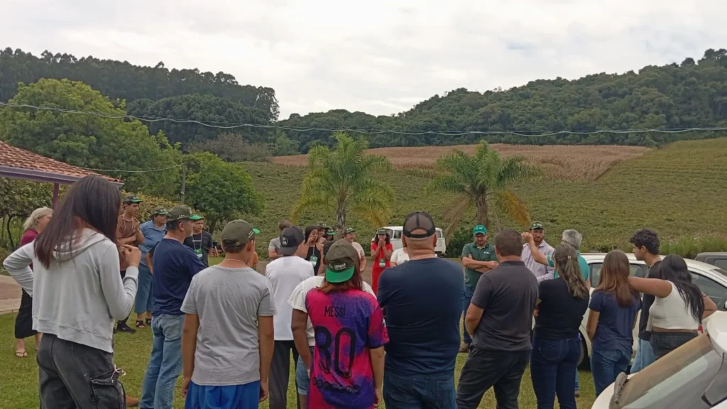 A visita foi conduzida pela proprietária Lindamir Frigotto e seu filho, Fabrício Frigotto, com articulação da interlocutora de Responsabilidade Social e Cultura da FIESC, Taylane Ramos Dias, e do supervisor regional do SENAR, Jeam Palavro. Para aprofundar as explicações técnicas, os participantes também contaram com a presença dos agrônomos do SENAR, Edgar Favarin, e Cristhian Felini.