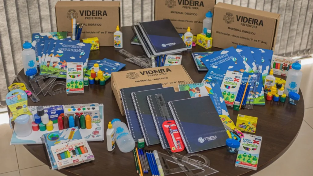 A Prefeitura de Videira iniciou a distribuição dos kits de material escolar gratuitos para estudantes matriculados na rede municipal de ensino. A ação contempla crianças da educação infantil até o ensino fundamental e representa um investimento aproximado de R$ 1 milhão por parte do município.