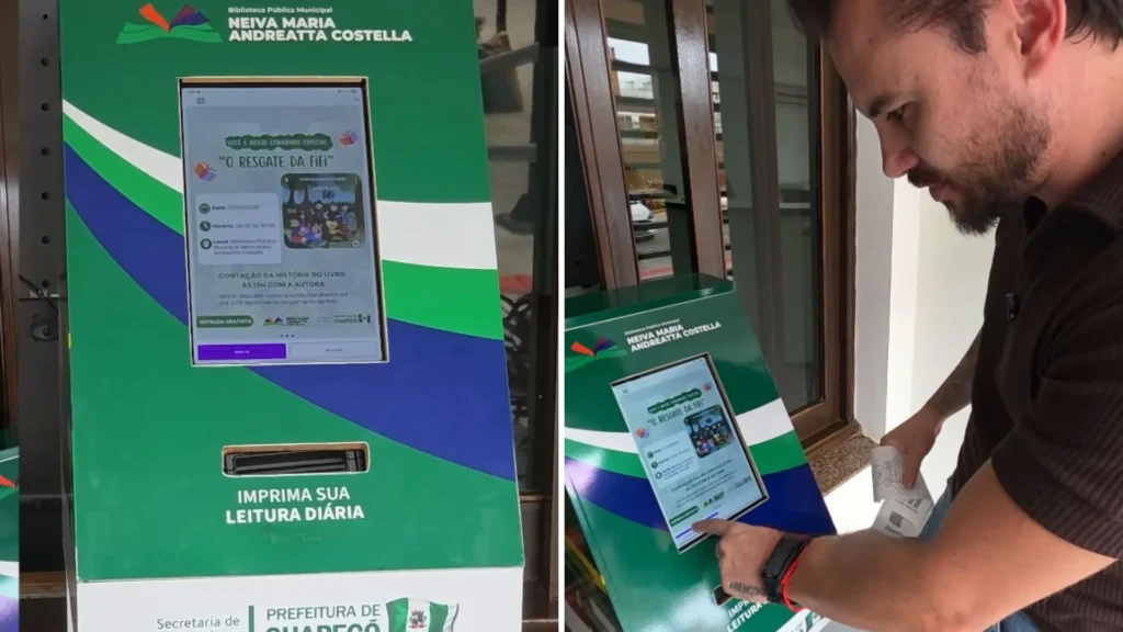 O equipamento, adquirido pela Prefeitura de Chapecó, funciona na Biblioteca Pública Municipal e garante acesso gratuito a conteúdos literários e informativos de forma rápida, prática e acessível.