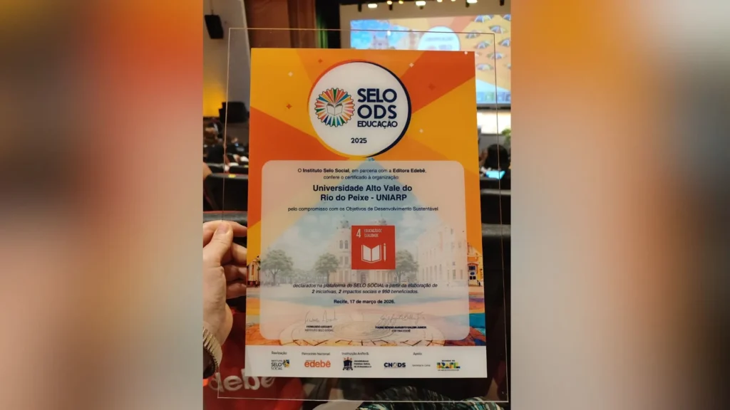 A reitora da UNIARP, Dra. Rosana Claudio Silva Ogoshi destaca que receber o Selo ODS Educação pelo segundo ano consecutivo reafirma o compromisso da UNIARP com uma educação transformadora, conectada às necessidades da sociedade e aos princípios da Agenda 2030. “Parabenizo todas as equipes envolvidas nas iniciativas certificadas, que demonstram sensibilidade social, inovação e responsabilidade com o desenvolvimento sustentável.”