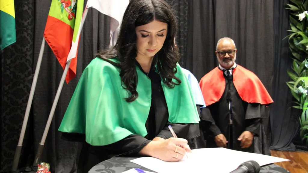 Após receber a veste branca, símbolo tradicional da liderança acadêmica, a nova Reitora destacou o significado histórico e institucional desse momento: “Sou a primeira mulher a ocupar a Reitoria da Uniarp em mais de cinco décadas de trajetória institucional. Recebo essa condição com honra, mas, sobretudo, com responsabilidade. A presença feminina na liderança universitária simboliza o amadurecimento democrático e o reconhecimento da competência das mulheres na gestão do ensino superior. Assumo este compromisso com dedicação, diálogo e profundo respeito pela missão comunitária desta Universidade. Que este momento inspire outras mulheres a ocuparem espaços de decisão”.