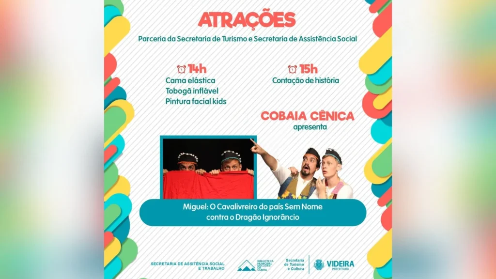 O espetáculo teatral intitulado “Miguel: o cavalivreiro do país Sem Nome contra o dragão Ignorâncio” promete prender a atenção do público e despertar a imaginação das crianças, ao mesmo tempo em que incentiva o gosto pela leitura.