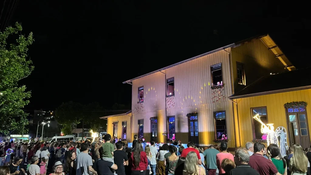 O Natal dos Sonhos Caçador iniciou com muito sucesso na noite desta quarta-feira, 26, durante a primeira edição do evento “Natal no Museu”, realizado pela Prefeitura de Caçador, por meio da Secretaria de Cultura. A abertura oficial da programação natalina reuniu grande público em frente ao Museu do Contestado e marcou o início das celebrações de fim de ano no município.