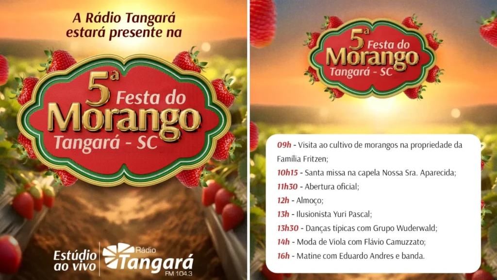 “Quero convidar a todos para participar da 5ª edição da Festa do Morango, que acontecerá dia 15 do 11, portanto, amanhã, sábado, Feriado de Proclamação da República, em Tangará, no Salão da Comunidade de Colônia Muller”, afirmou.
