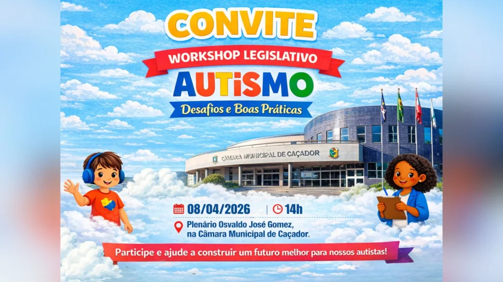 A Câmara Municipal de Caçador promove, na próxima quarta-feira (8), a partir das 14h, o Workshop Legislativo “Autismo: Desafios e Boas Práticas”, um espaço de diálogo, escuta e construção coletiva voltado à inclusão e ao fortalecimento de políticas públicas para pessoas com Transtorno do Espectro Autista (TEA). O evento será realizado no Plenário Osvaldo José Gomez e integra a programação oficial da Semana de Conscientização sobre o Autismo no município.