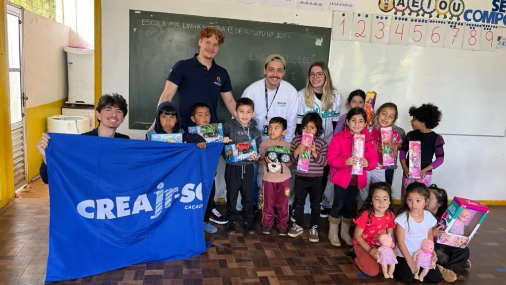 Um Dia das Crianças diferente marcou os alunos da Escola da Linha Vitória, no interior de Lebon Régis. A iniciativa foi organizada pelo CREA Júnior, em parceria com a Atlética de Medicina da Uniarp, que se uniram em uma campanha de arrecadação de brinquedos para crianças da região.