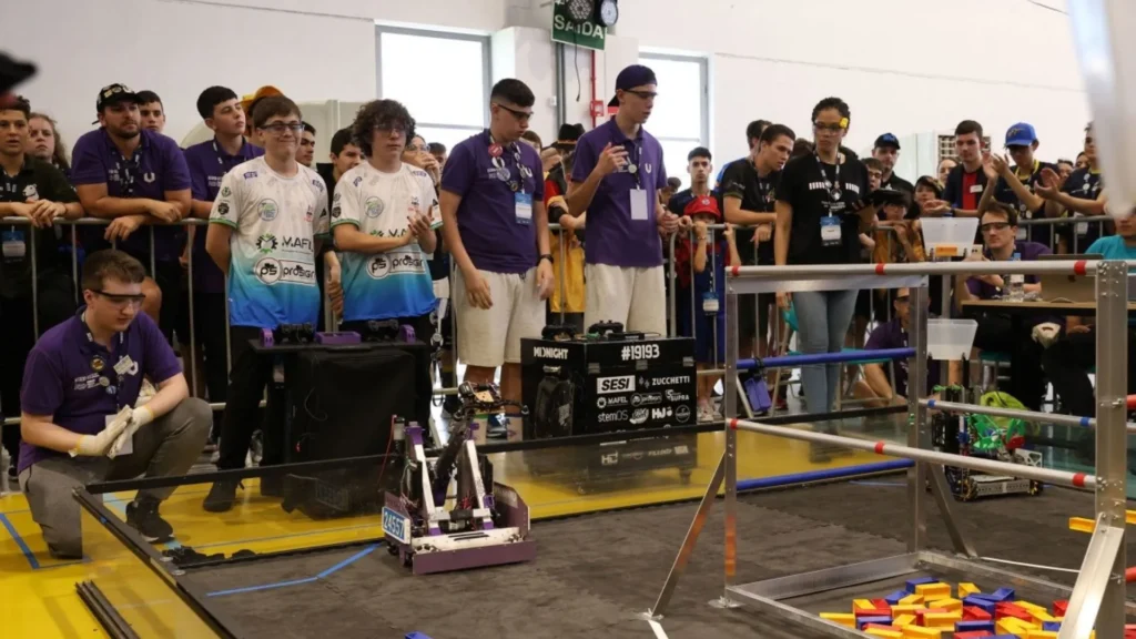 FRC – Desafia estudantes de 14 a 18 anos a criar robôs de até 54 kg e 1,5 metro para jogos de arena. É a prova mais próxima da engenharia profissional.