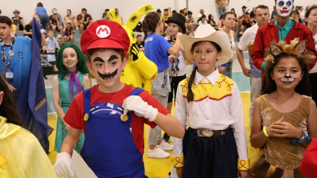 Feira cosplay: Espaço para fãs caracterizados exibirem personagens e tirarem fotos.