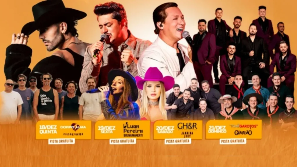 A programação oficial inclui atrações musicais variadas e atividades culturais que devem atrair visitantes de diferentes cidades. Veja os destaques confirmados para cada dia:
