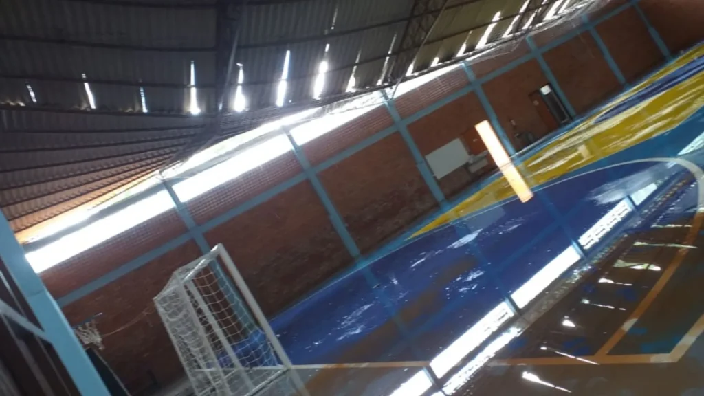 Além disso, um ginásio esportivo na comunidade de Bom Sucesso sofreu destelhamento parcial, com danos visíveis nas paredes.