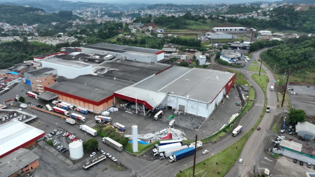 A Videplast registrou os maiores estragos, com parte do telhado destruído e danos nos depósitos e estacionamentos de caminhões.