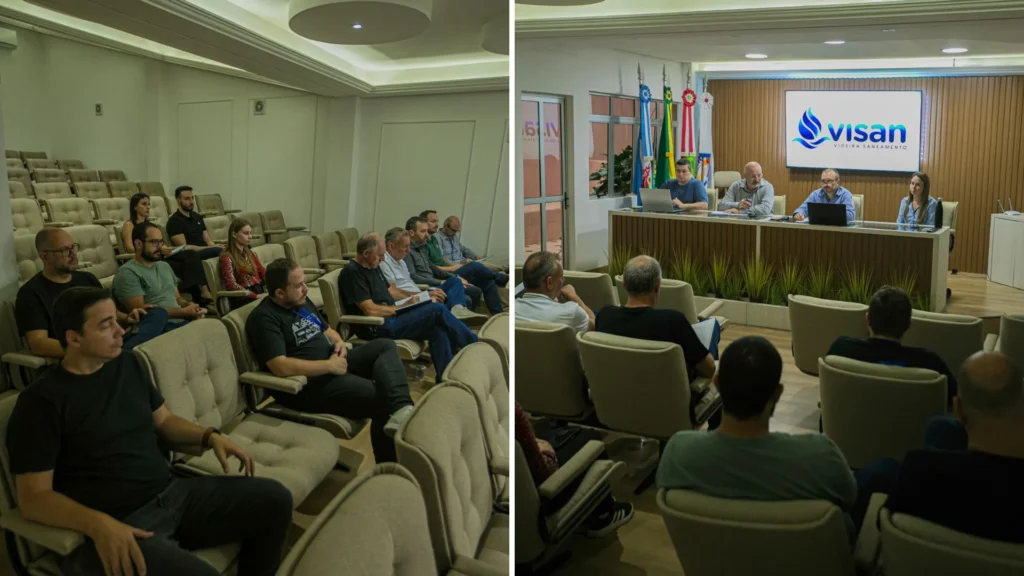 Durante a reunião, foram apresentados os novos membros do CONSAVI e discutidos os investimentos e obras realizadas pela VISAN em 2025, além de outros temas gerais relacionados à gestão e manutenção do saneamento básico.