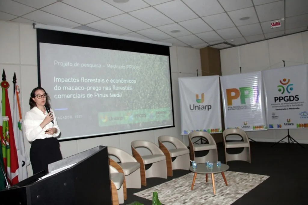 Na manhã desta terça-feira (16), a Universidade Alto Vale do Rio do Peixe (UNIARP) realizou a apresentação oficial da pesquisa “Impactos florestais e econômicos do macaco-prego nas florestas comerciais de Pinus taeda”, que será desenvolvida pelo Programa de Pós-Graduação em Desenvolvimento e Sociedade (PPGDS). O evento reuniu autoridades, pesquisadores, representantes do setor florestal, docentes, acadêmicos e convidados.
