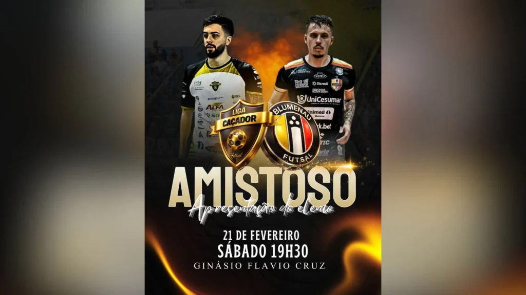O Caçador Futsal segue sua preparação para a temporada 2026 e entra em quadra neste sábado para um importante teste diante do Blumenau Futsal. O amistoso será realizado às 19h30, no Ginásio Flávio Cruz, em Caçador.