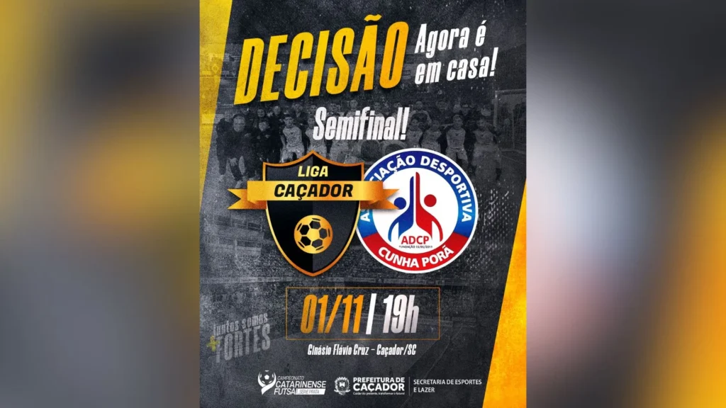 A diretoria reforça o chamado à torcida para transformar o ginásio em um verdadeiro caldeirão. “Esse é um momento histórico para o projeto. O Caçador Futsal/SMEL tem mostrado evolução a cada temporada e agora estamos a um passo da final. Contamos com o apoio da torcida, que sempre faz a diferença, e agradecemos imensamente aos patrocinadores, apoiadores e à Secretaria Municipal de Esportes e Lazer (SMEL), que tornam tudo isso possível”, afirmou o presidente Ricardo Schulz.