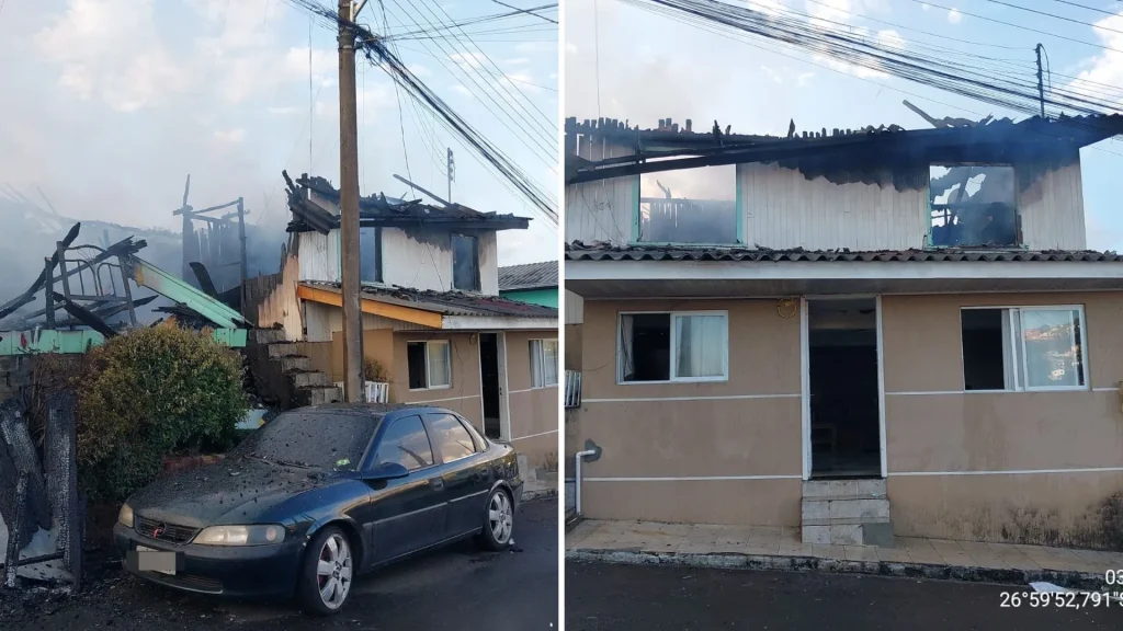 Na tarde desta sexta-feira (03), um incêndio de grandes proporções atingiu três residências na Rua Ernesto Grando, no bairro Farroupilha, em Videira. O fogo se espalhou rapidamente e causou a destruição total de uma das casas, deixando seus moradores sem nada. Felizmente, não houve feridos, mas o prejuízo material foi imenso.
