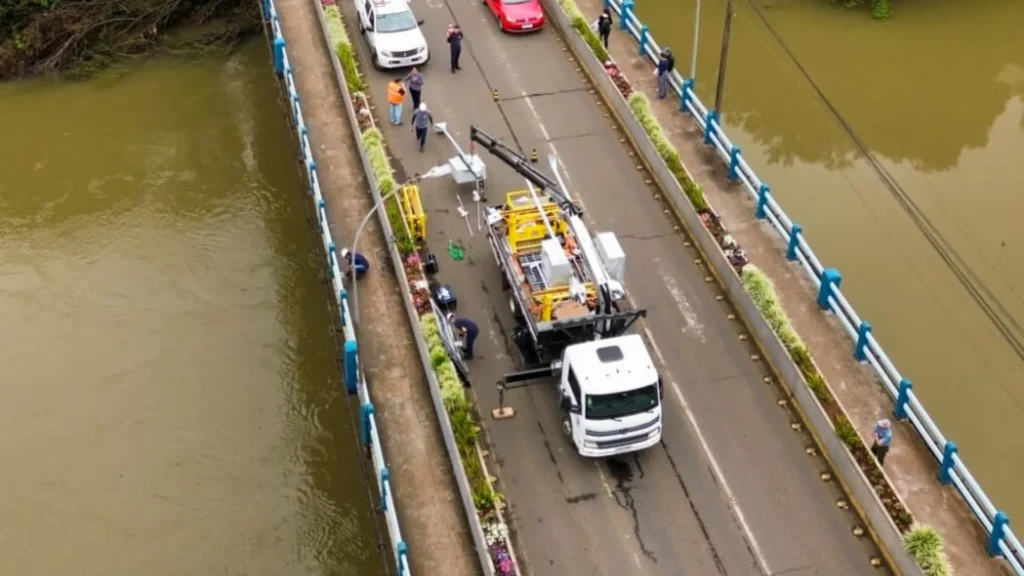 A Defesa Civil de Santa Catarina iniciou, nesta sexta-feira (03), a instalação de uma nova estação hidrometeorológica em Videira, especificamente no Rio do Peixe. O equipamento foi fornecido e está sendo instalado pela Secretaria de Estado de Proteção e Defesa Civil, com o objetivo de ampliar o monitoramento do nível do rio durante períodos de chuva intensa.