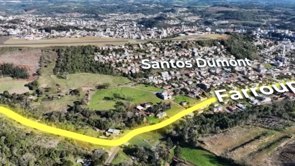 A nova avenida terá extensão de 1,8 km, incluindo acostamento, e ligará a entrada do Bairro Portal das Videira, passando por trás do Aeroporto e do Bairro Santos Dumont, até o Bairro Farroupilha, nas proximidades do campinho do Roberti.