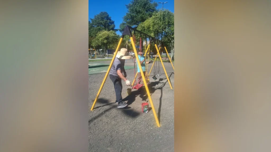 Entre os serviços realizados estão roçadas e limpeza de áreas públicas, além da manutenção e pintura de brinquedos em diversas praças, garantindo mais segurança e melhor conservação dos espaços de lazer.