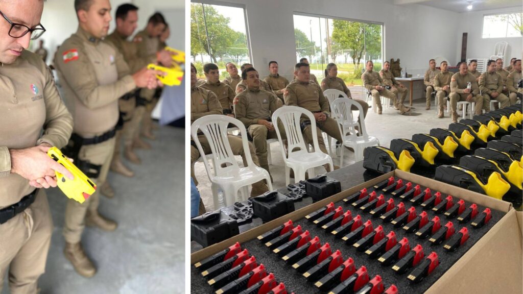 Ao longo da instrução, os policiais receberam conhecimentos teóricos e práticos acerca da conceituação e da legislação aplicável ao uso da força, do modelo de uso diferenciado da força e do manejo seguro de armas eletroeletrônicas de incapacitação neuromuscular.
