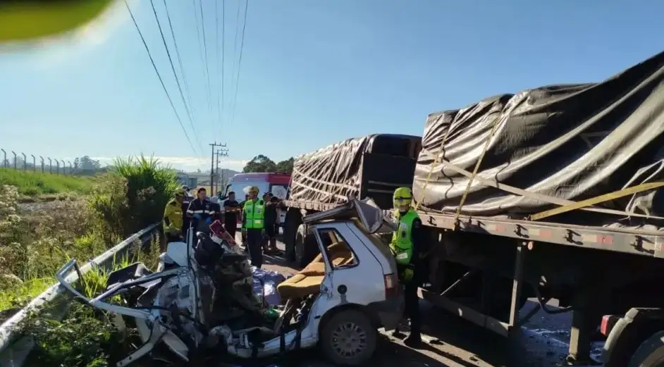 No automóvel estavam três homens de 38, 37 e 19 anos, e duas mulheres de 41 e 24 anos. O motorista do caminhão nada sofreu. Com o ocorrido, o trânsito ficou bloqueado no trecho.
