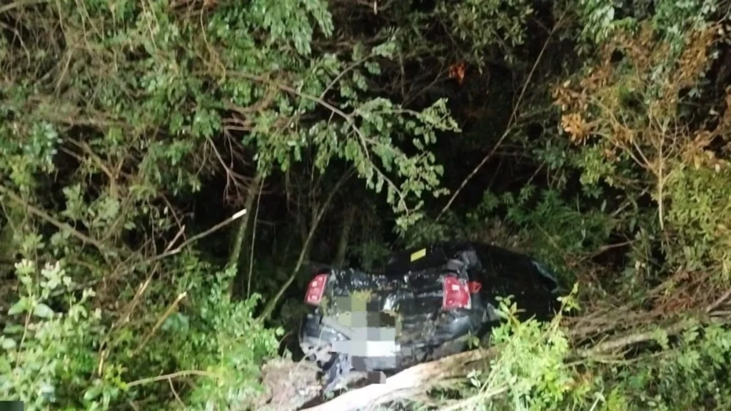 O veículo acabou descendo uma ribanceira às margens da rodovia, o que exigiu atenção redobrada das equipes de socorro durante o atendimento da ocorrência.
