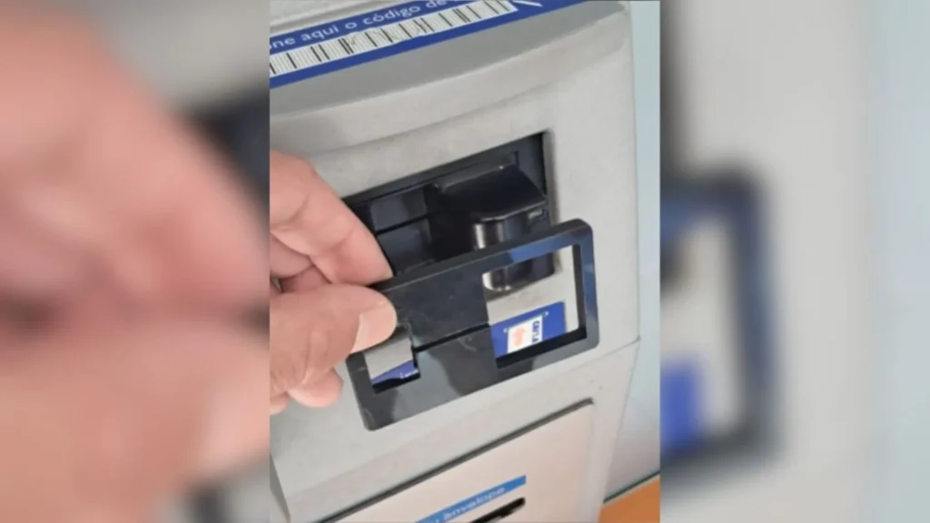 De acordo com o relatório policial, o adesivo colado no equipamento indicava um número de 0800 fraudulento, utilizado para enganar clientes e aplicar o golpe.