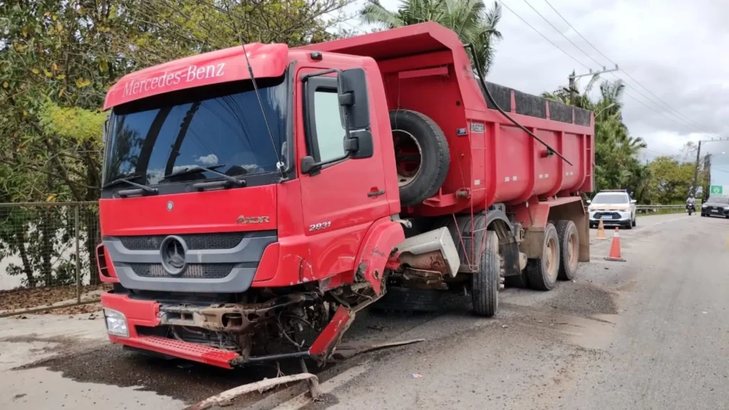 Já o caminhão teve avarias na dianteira, incluindo o para-choque e rodas dianteiras.