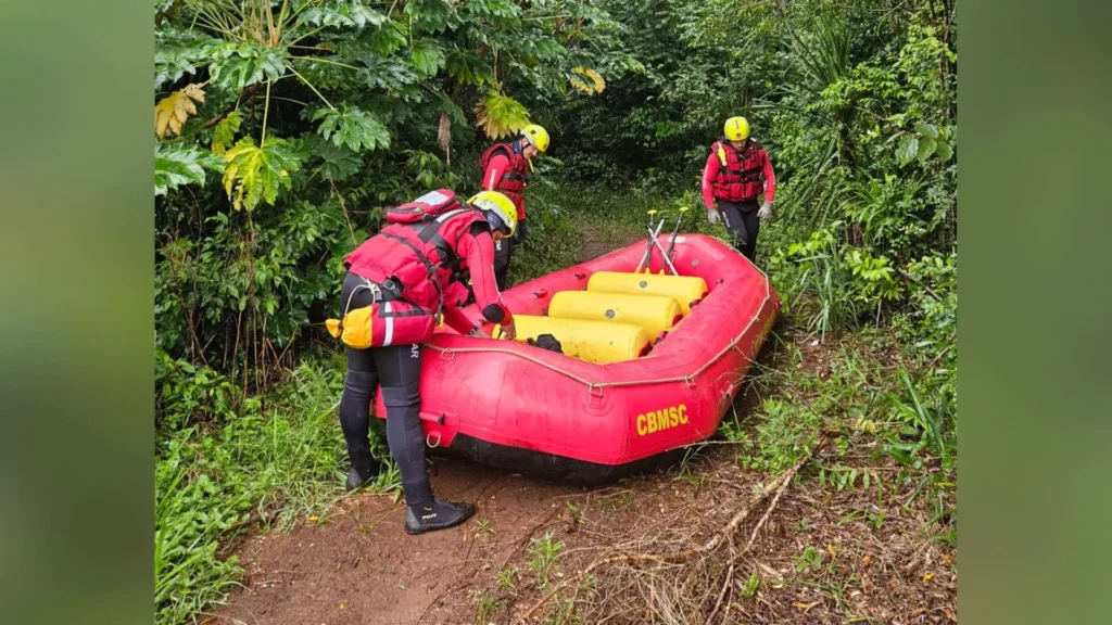 Neste 12º dia de operação, as equipes retomaram os trabalhos com uma estratégia específica, aproveitando o nível mais baixo do rio. Com o uso de uma embarcação, os bombeiros navegaram pelo leito, concentrando as buscas em pontos com acúmulo de galhos e locais onde havia indícios de odor.