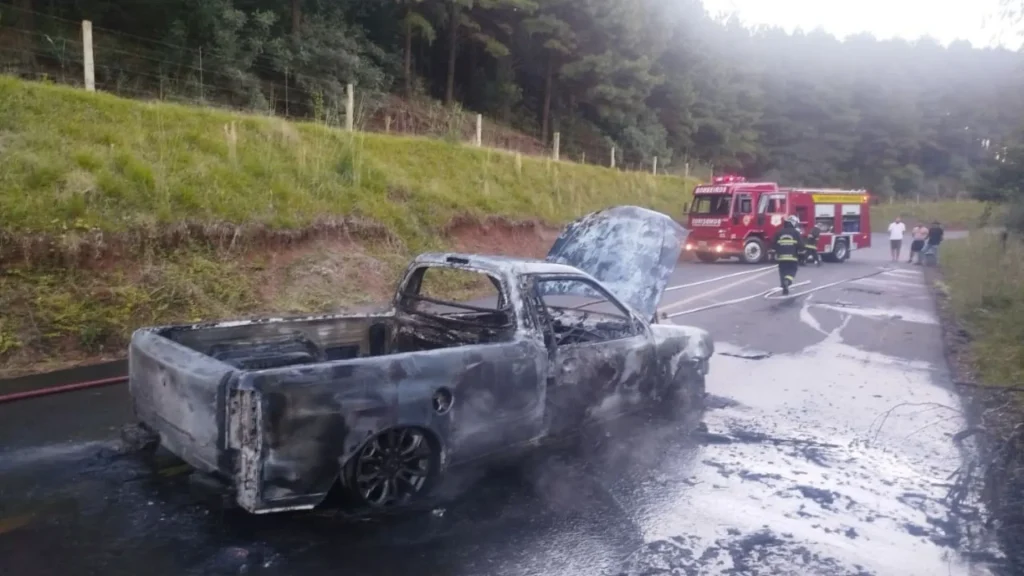 Veículo pega fogo em rodovia e motorista fica ferido
