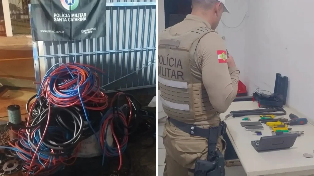 Dois homens foram presos na tarde desta quarta-feira (22) após serem flagrados com cerca de 430 quilos de fios de cobre furtados de estruturas de telecomunicações no Sul de Santa Catarina. A ação criminosa atingiu unidades da operadora Oi e provocou interrupções no serviço de internet em municípios como Forquilhinha e Araranguá.