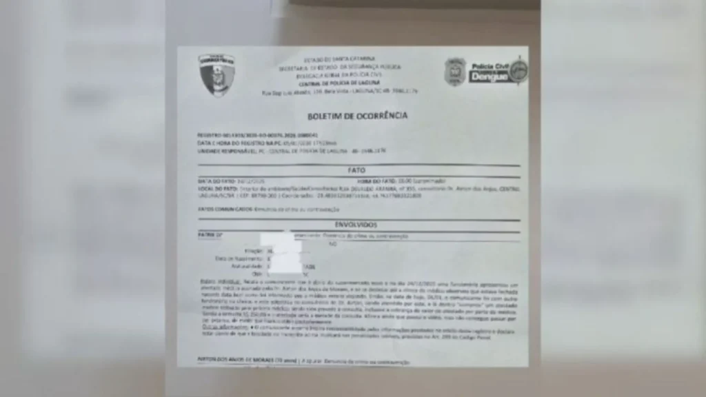 Além do boletim de ocorrência, Patrik formalizou denúncia junto ao Conselho Regional de Medicina de Santa Catarina (CRM-SC). Em nota, o órgão informou que tomou conhecimento dos fatos e que a situação foi encaminhada à Corregedoria, que dará início à apuração por meio dos procedimentos competentes.