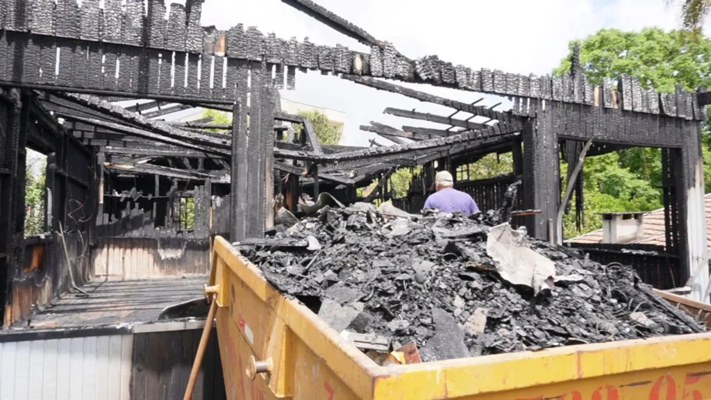 A residência, de dois andares — parte superior em madeira e parte inferior em alvenaria — ficou severamente danificada e deve precisar ser reconstruída quase por completo.