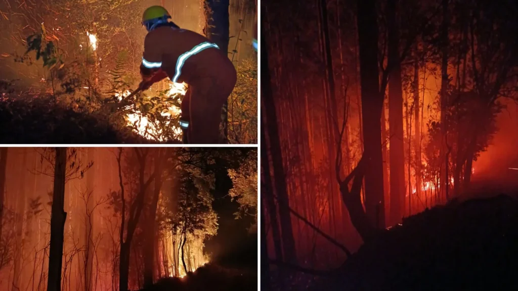 O incêndio rapidamente tomou grandes proporções, exigindo estratégias coordenadas para conter as chamas.