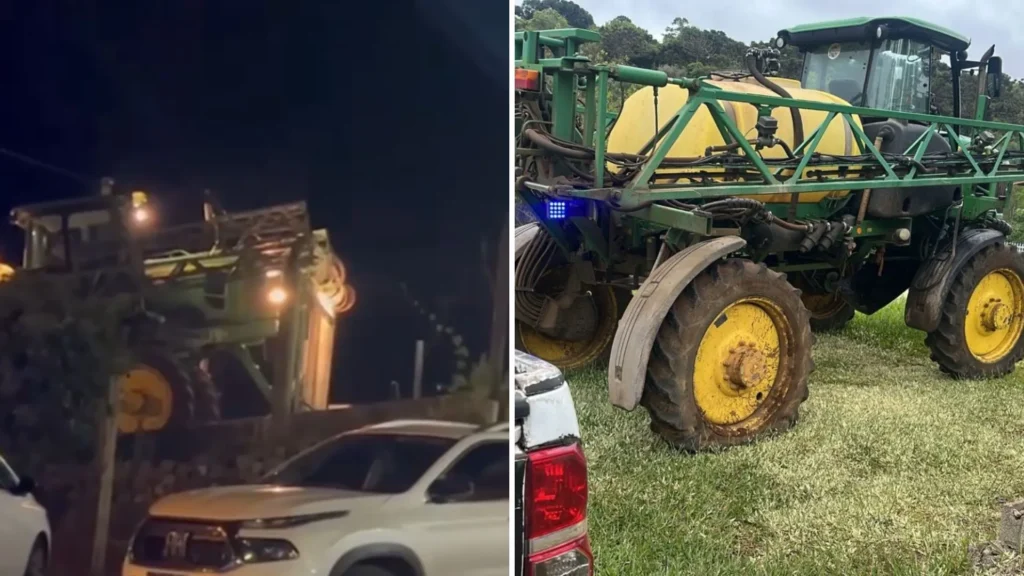 Em seguida, fugiu conduzindo a máquina agrícola pela rodovia, ignorando sinais de alerta das equipes policiais.