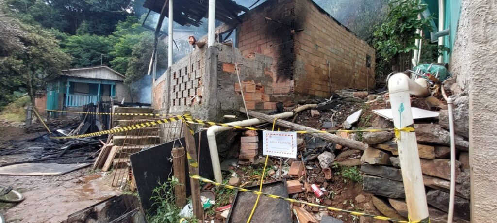 Mesmo com a residência totalmente destruída, ninguém ficou ferido.