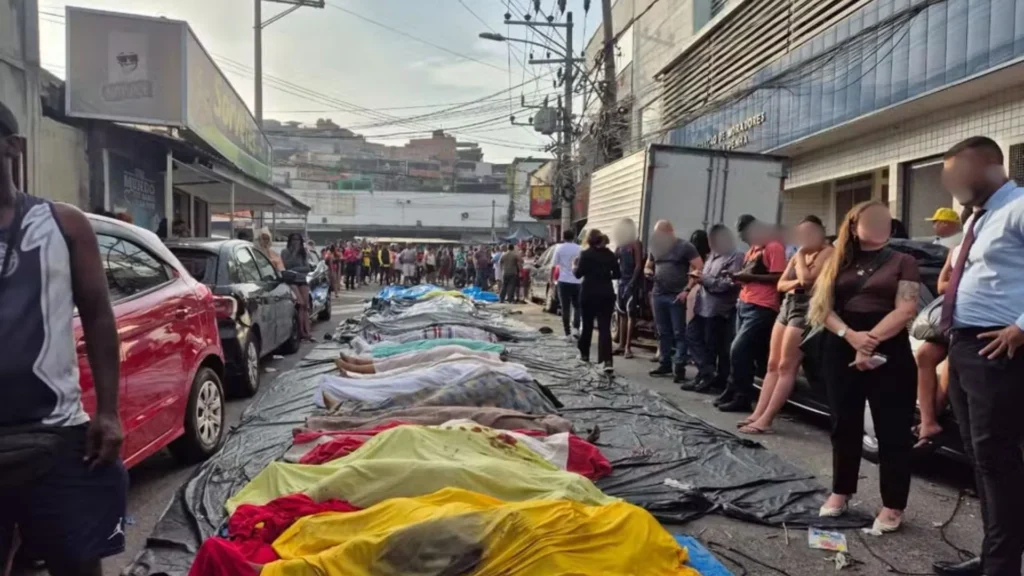 Moradores do Complexo da Penha, na Zona Norte do Rio de Janeiro, levaram pelo menos 50 corpos até a Praça São Lucas, situada na Estrada José Rucas — uma das vias mais movimentadas da região — durante a madrugada desta quarta-feira (29), no dia seguinte à operação mais letal registrada na história do estado.