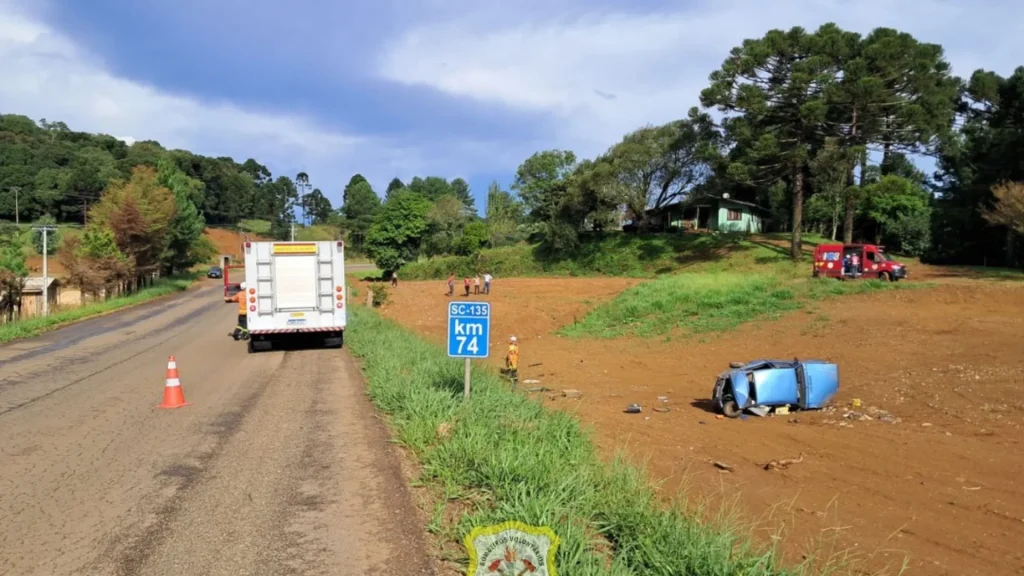 O sinistro ocorreu próximo ao acesso do Assentamento Hermínio Gonçalves, foi atendido pelos Bombeiros Voluntários de Caçador e Polícia Militar Rodoviária.