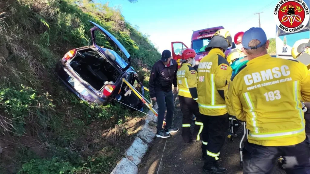 Na manhã desta quinta-feira, o Trem de Socorro do Corpo de Bombeiros foi acionado para atender um grave acidente de trânsito na SC-355, sentido Lebon Régis. No local, um Fiat Palio, de Videira, saiu da pista. O veículo era conduzido por uma mulher de 35 anos, que estava consciente e orientada.