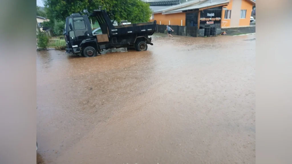 Um novo temporal atingiu o município de Timbó Grande no final da tarde de quarta-feira (14), provocando alagamentos, danos em residências e mobilizando novamente a Defesa Civil. O episódio ocorreu poucos dias após outro evento climático que gerou prejuízos significativos, principalmente em razão do grande volume de chuva registrado.