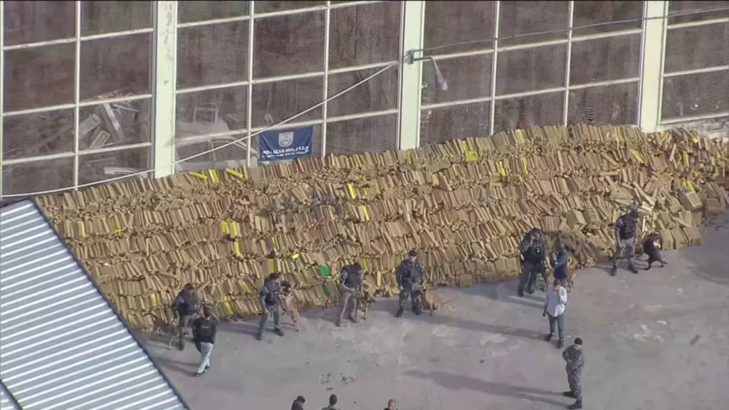 Uma operação da Polícia Militar resultou na apreensão de aproximadamente 48 toneladas de maconha na tarde desta terça-feira (7), no Complexo da Maré, na Zona Norte do Rio de Janeiro. A droga foi localizada na comunidade da Nova Holanda, escondida em um bunker improvisado no terraço de uma fábrica, em uma ação considerada uma das maiores já registradas no estado em uma única operação.