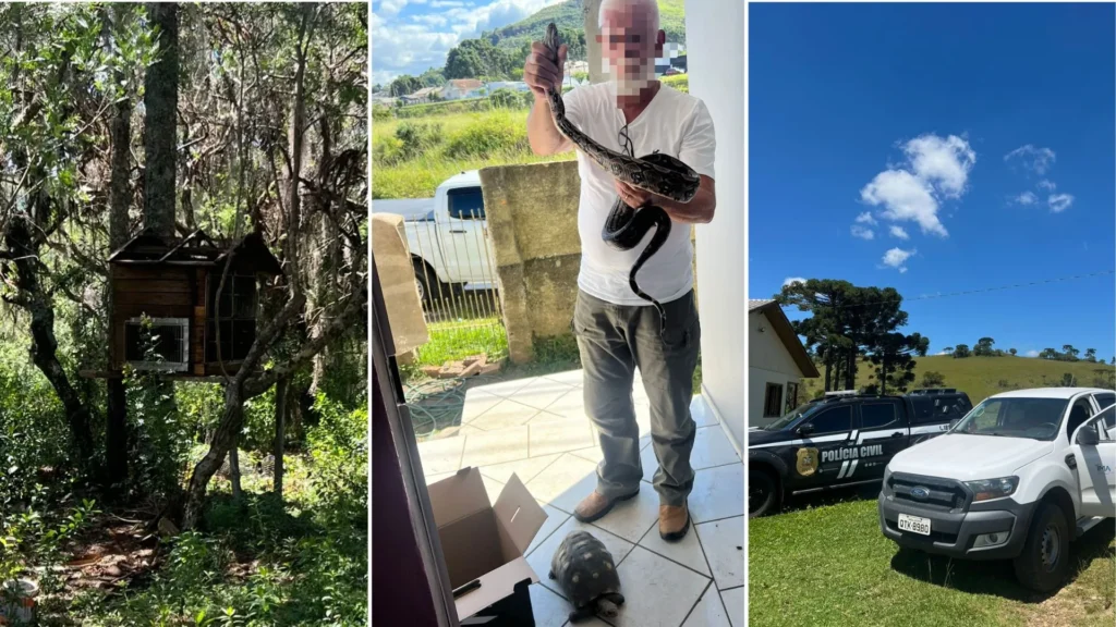 Em Lages, foram vistoriados dois imóveis, onde foram recolhidos três jabutis piranga e duas cobras, sendo uma jiboia e uma corn snake. Já em São Joaquim, em uma propriedade rural no interior do município, foi apreendida uma arara-canindé.